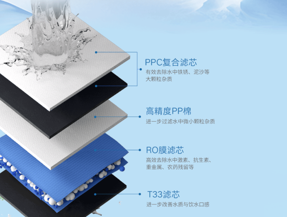 高能复合滤芯+RO膜滤芯,层层把关,滤出纯净。