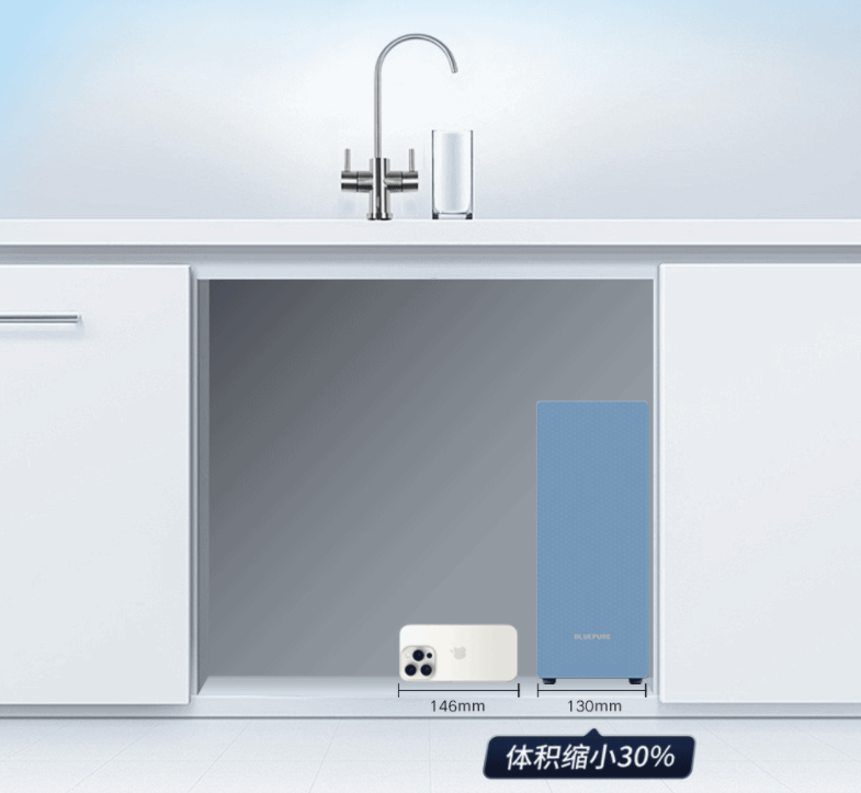 相较传统纯水机体积缩小30%,高能集成,告别空间焦虑。