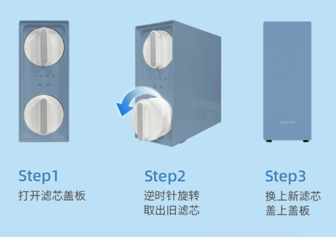 Step2 逆时针旋转取出旧滤芯;